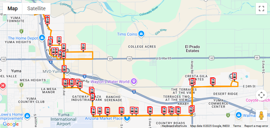 Downtown Yuma Transit Center to Fortuna Foothills via Arizona Western College, University of Arizona and Northern Arizona University and 32nd Street